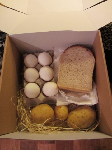Ikväll ringde det på dörren till vårt hus. Utanför stod en trevlig tjej som ville ge oss ett gratis smakprov på bröd, potatis och ägg i en fin låda. Det var inte bara vi som fick, utan alla hus i vårt kvarter. De gjorde reklam för företaget Hemägg som levererar varor från utvalda svenska producenter mat hem till våra hus, inget köptvång. Just nu säljer de bröd, potatis, lax, äppelmust och ägg. Då varorna är ekologiska och närproducerade kostar de lite mer än vad man normalt sett betalar i butik, men å andra sidan kan det vara så att man får vad man betalar för.
