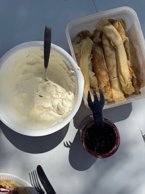 Morgonen efter tog jag en löptur för att utforska området och sprang in till själva Torekov ”stad”, totalt en löptur på ca 7 km. Så vackert att springa längs vattnet och insupa omgivningen. Mattias och Fabbe tog en cykeltur. Vi avslutade med lite styrka på gräsmattan vid husbilen och åt efterföljande frukost. Underbar start på dagen. Det blev överlag inte mycket träning i år, totalt sprang vi kanske 5-6 korta löpturer på dessa 4 veckor men vi går ju ut och går med Fabbe flera gånger om dagen och det är ju också motion. Helt perfekt, jag behövde vila på min semester.
