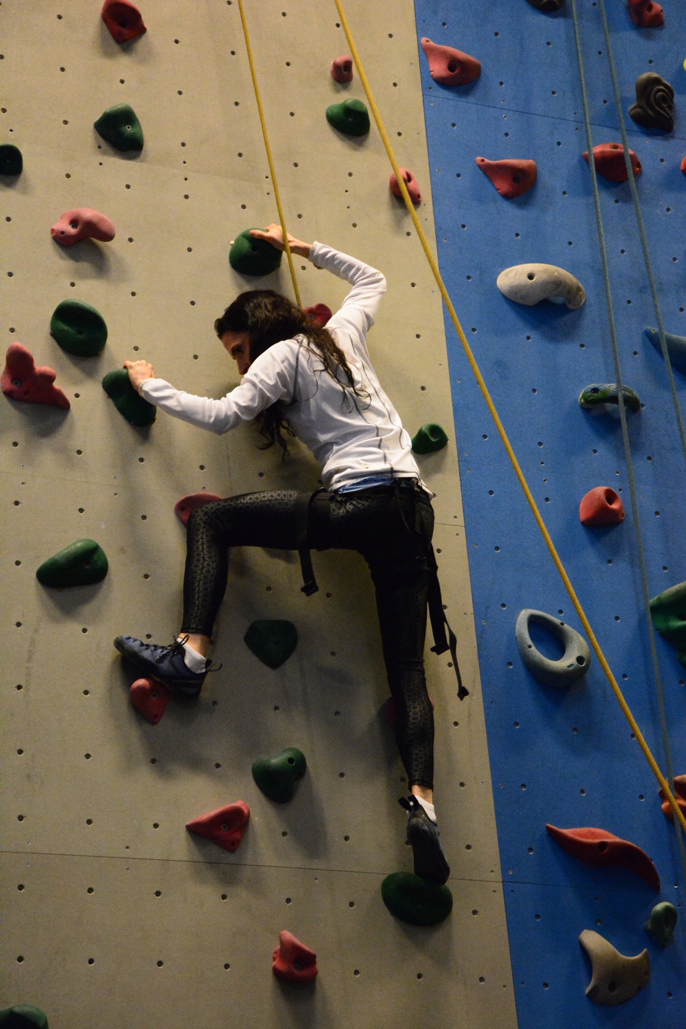 Utrustning, dvs skor och sele fick man hyra på plats. Sedan var det bara att turas om att klättra medan kompisen med grönt kort säkrade (spände fast och höll i säkerhetsrepet). Väggarna har olika svårighetsgrad efter mängden och typen klättergrepp och lutning på väggen. Vi började med några lätta väggar men testade även att klättra på väggar med högre svårighetsgrad. Riktigt kul och utmanande!