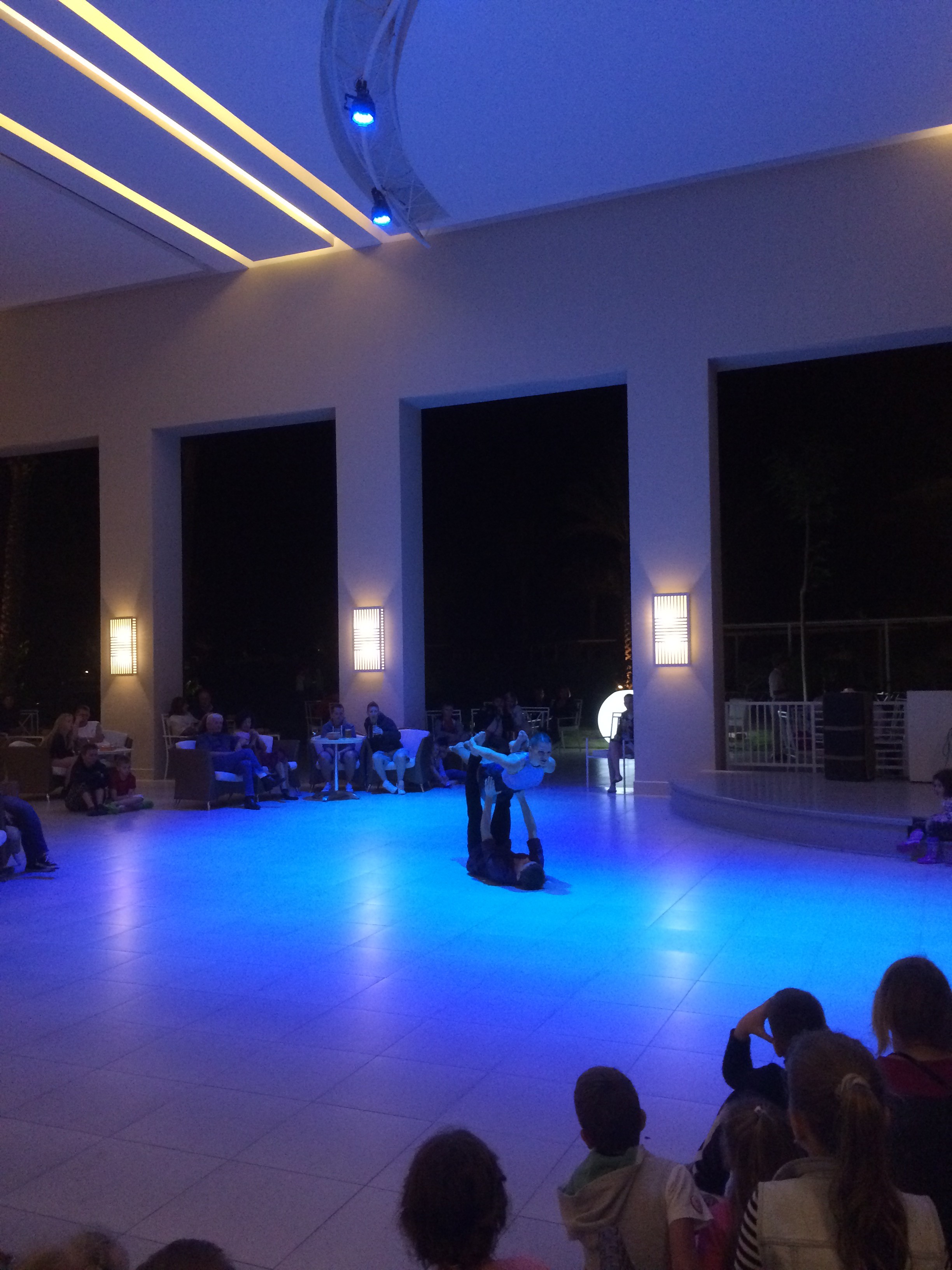 Varje kväll är det minidisco som mina barn känner sig för gamla för och sedan följer en familjeshow. Igår var det cirkus som var helt okej. Vad det är för show ikväll blir en överraskning.